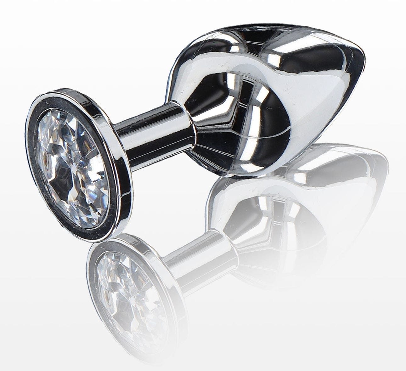 Eleganter Analplug aus Aluminium mit Strassstein. Dieser Analplug aus Aluminium vereint originelles Design mit sinnlicher Stimulation. Mit seiner einführbaren Länge von 7,5 cm und einer progressiven Breite von bis zu 3,3 cm bietet er ein angenehmes, gleichzeitig intensives Erlebnis – perfekt für Einsteiger:innen und Fortgeschrittene.. Besonders hervorzuheben ist der runde, glänzende Strassstein an der Spitze, der den Anus optisch betont und das Sextoy zu einem echten Blickfang macht. Damit wird der Plug nicht nur zu einem spannenden Accessoire, sondern auch zu einem spaßigen Highlight im Liebesspiel.. Gefertigt aus hochwertigem Aluminium, überzeugt der Plug mit einer glatten Oberfläche, die sich angenehm einführen lässt. Zudem eignet sich das Material hervorragend für Temperaturspiele: Einfach im Kühlschrank kühlen oder im Wasserbad erwärmen, um neue, intensive Reize zu entdecken.. ✔ Einführbare Länge: ca. 7,5 cm✔ Progressive Breite bis 3,3 cm✔ Glatte Oberfläche aus Aluminium✔ Funkelnder Strassstein als optisches Highlight✔ Ideal für Temperaturexperimente. Anwendung & Pflege. Für maximalen Komfort empfehlen wir die Nutzung eines wasser- oder silikonbasierten Gleitmittels. Nach der Anwendung ist der Plug dank seines Materials besonders leicht zu reinigen – einfach mit warmem Wasser und einem Toy Cleaner.. Mit diesem Analplug aus Aluminium mit Strassstein setzt du auf ein originelles, edles Sextoy, das Spaß, Sinnlichkeit und optische Eleganz perfekt vereint.