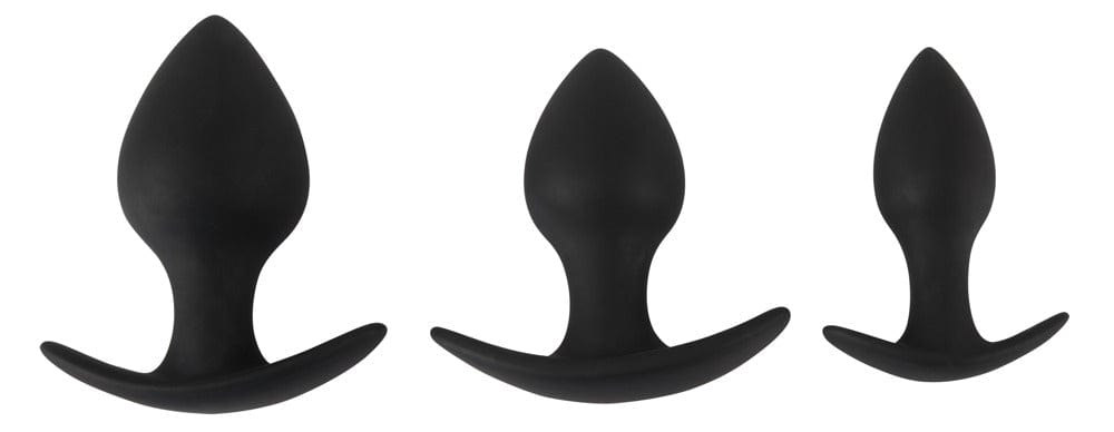 Ideal für ein stufenweises Analtraining!. 3-teiliges Analplug-Set mit angenehm softer Textur. Die unterschiedlichen Größen eignen sich perfekt für ein schrittweises Analtraining. Mit ihrer konischen Form sind die Plugs besonders leicht einführbar und bieten ein angenehm ausgefülltes Gefühl. Mit extra breiter Basis für einen sicheren Halt und ein spielend leichtes Handling.. Plug 1: Gesamtlänge 8,5 cm, Ø 3 cm; Plug 2: Gesamtlänge 8,9 cm, Ø 4 cm; Plug 3: Gesamtlänge 10 cm, Ø 4,6 cm. Silikon mit PU-Beschichtung.