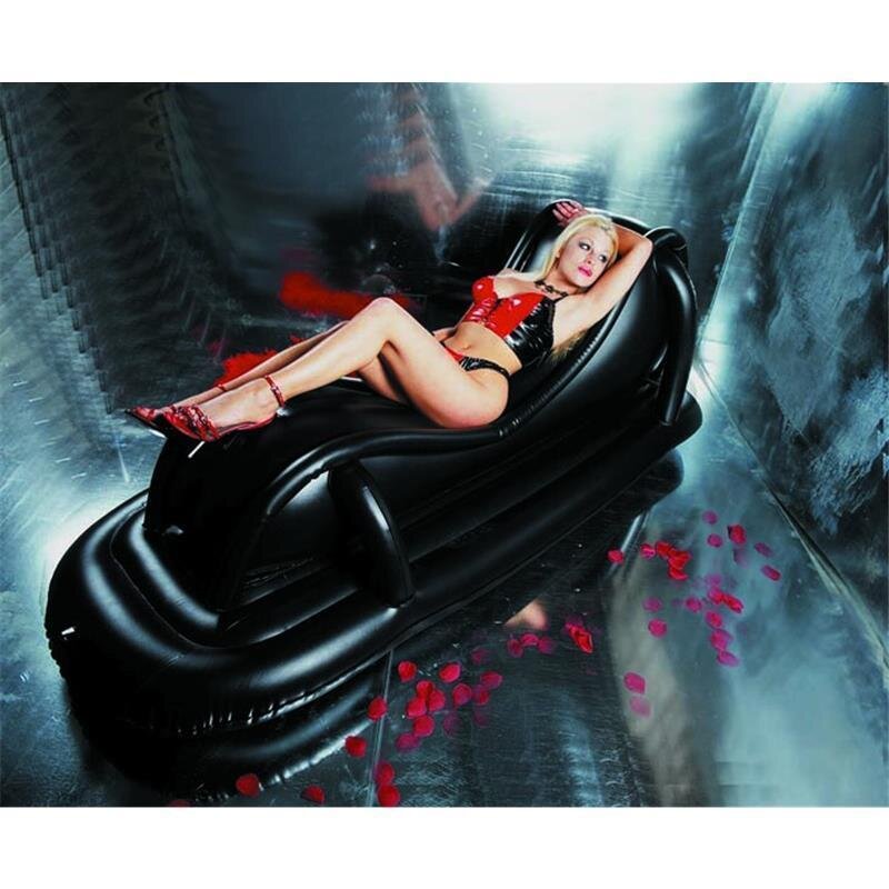 aufblasbare schwarze Couch für viele verschiedene Stellungen, Maße: 2,1m lang, 1m hoch, 0,85m breit, sehr stabiles, dickes Material!, elektr. Pumpe, Repair-Set! Mit 254kg belastbar!