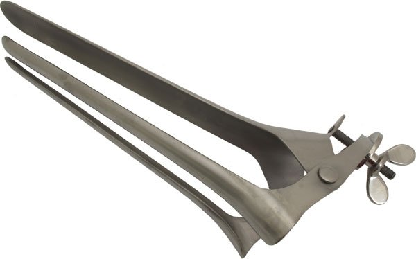 Jetzt wird es mächtig, wie Du am 35cm langen Spekulum sehen kannst und ganz klar, dieses Modell aus Stahl ist nichts für schwache Nerven. Hier muss angemerkt werden, dass das hochwertige Spekulum eher für Profis geeignet ist