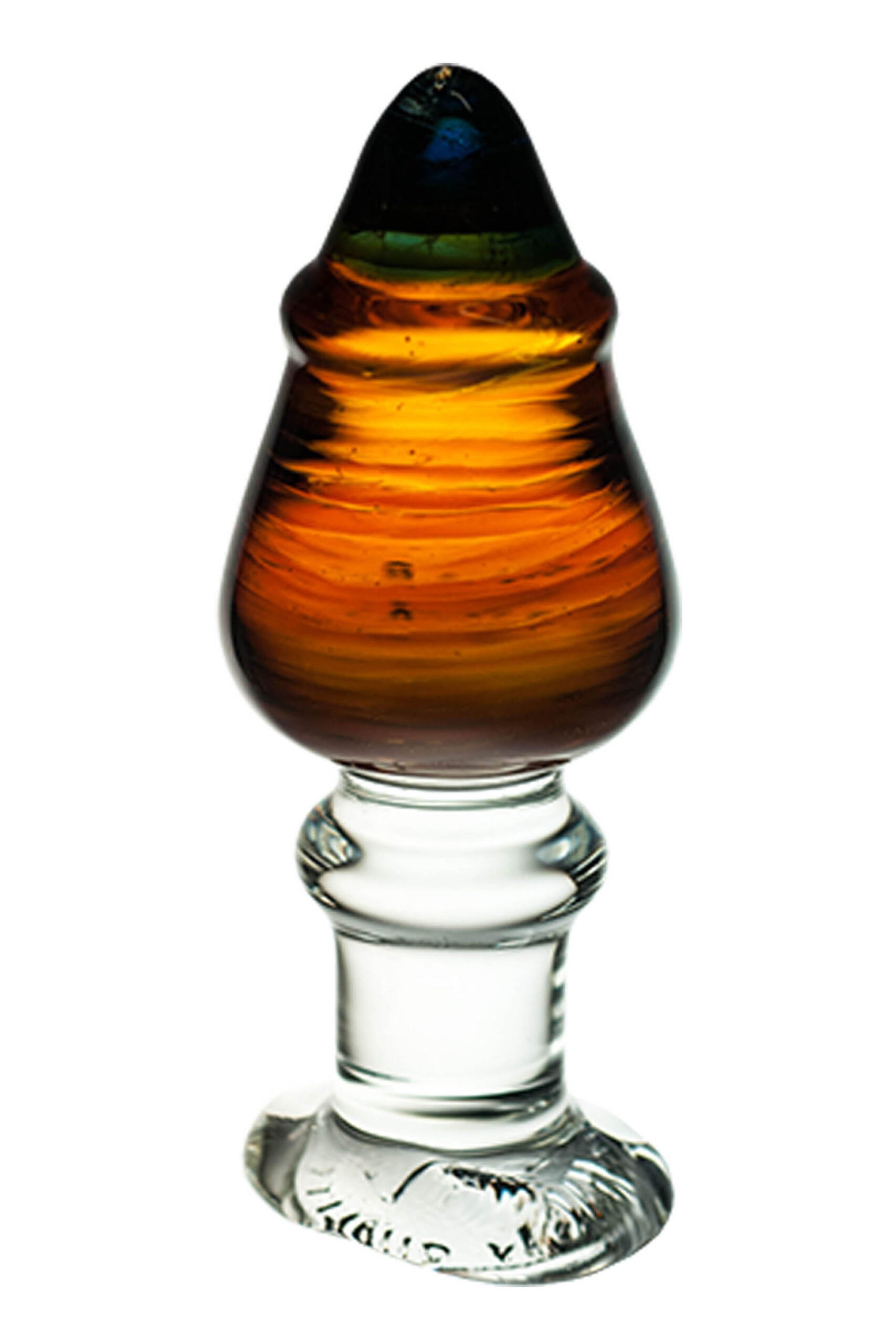 Dieser kleine, stramme Geselle erregt allein durch seine cognac-blaue Farbkombination Aufsehen. Doch die Liebesnerven Ihres Lustzentrums erregt aufs Höchste der kräftige, wohlgeformte Kopf dieses Glasplugs. Sein extra beringter, dicker Schaft kann beim Ein – und Ausgleiten Ihr Lustgefühl steigern und Sie vor Ekstase beben lassen. Ob vaginal oder anal, er könnte Sie liebessüchtig machen…