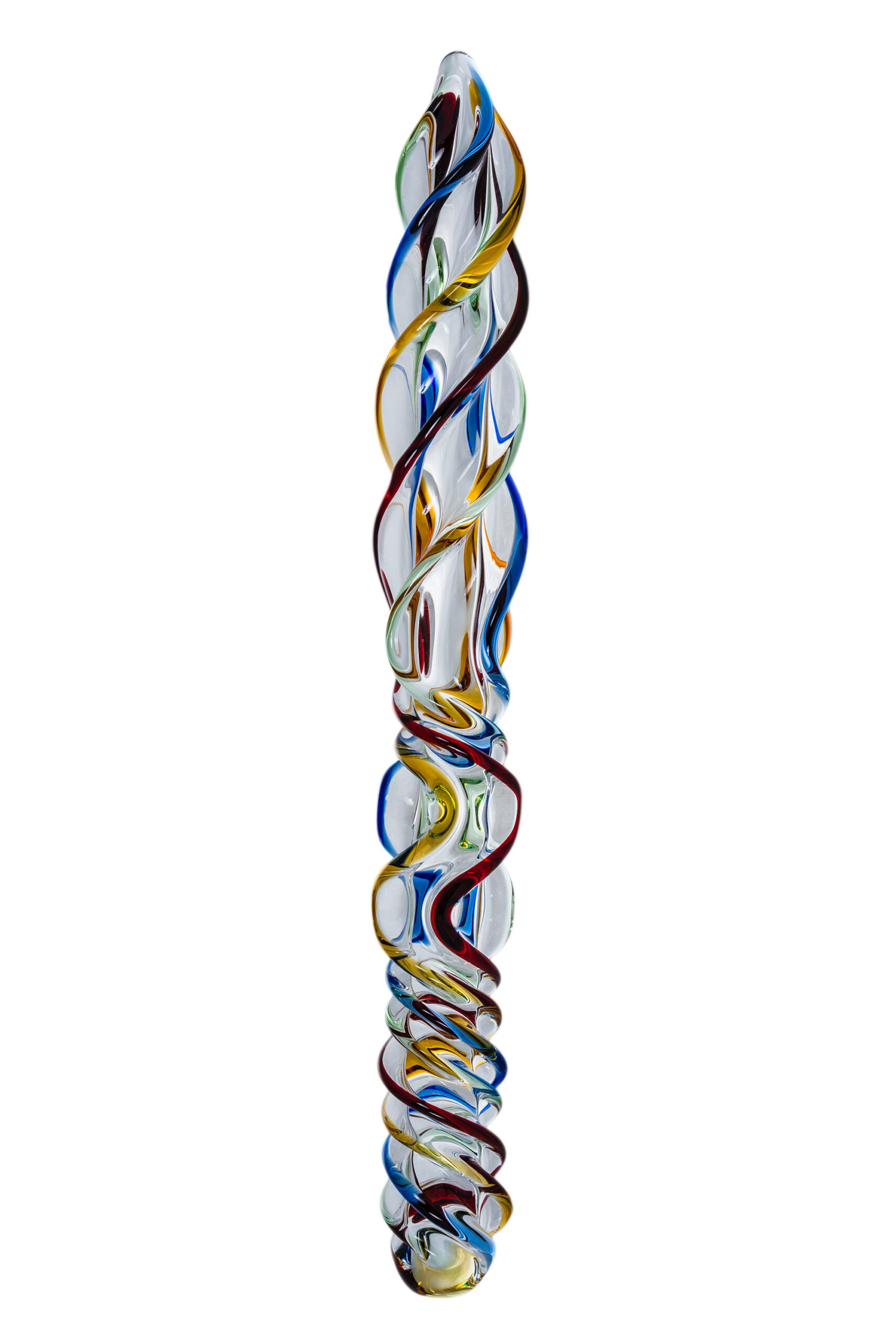 Dieses Kunstwerk gehört sicher zu den schönsten GLASSVIBRATIONS Produkten überhaupt. Es eröffnet zahlreiche Möglichkeiten zum Spielen! Seine extrem gewellte Oberfläche prickelt auf der Haut und kann in Ihrem innern wahre Explosionen auslösen. Gerade Freunde von sehr exklusiven und außergewöhnlichen Toys werden diesen Dildo lieben! Die wellenförmigen weiten Rundungen an der einen Schaft Hälfte liebkosen Klitoris und Vagina, während sich das andere Ende welches enger gewellt ist, geradezu den Weg frei bohrt. Diese Seite bietet sich auch ideal als Türöffner” an und ist daher für jegliche anale Spielchen geeignet. Optisch präsentiert sich der Herrscher der Liebe in geheimnisvollem transparent, rot, gelb, blau welches an Eleganz kaum zu toppen ist. Gönnen Sie sich dieses Meisterwerk…