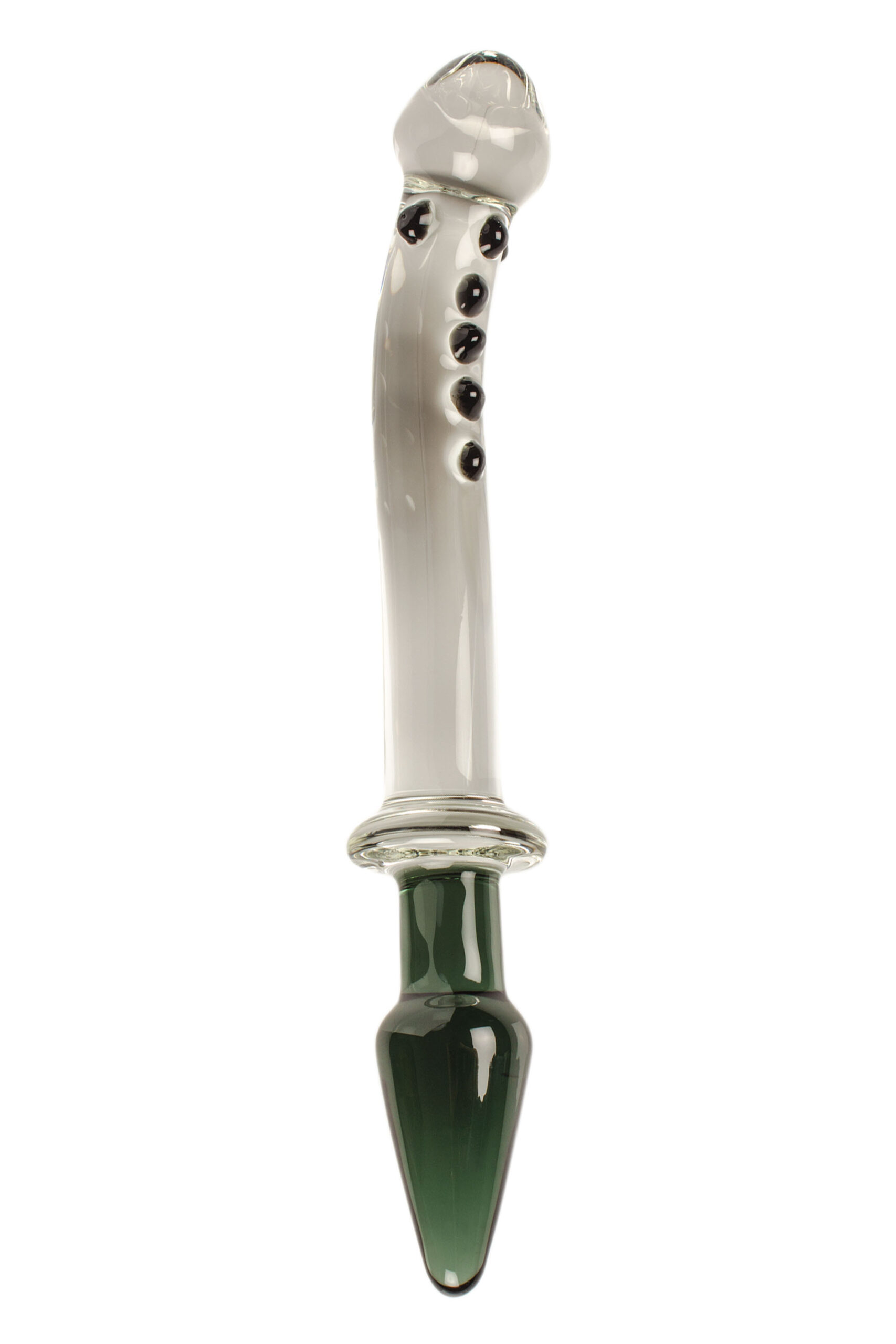 Dieses prachtvolle, edle Glasdildo-Zwillingspaar lässt Sie in die Welt der Lust gleiten. Der dem Penis nachempfundene klare Kopf mit den darauf folgenden schwarz / transparenten Lust-Noppen, kann vaginal oder anal genutzt werden. Am anderen Ende erwartet Sie ein klassischer Butt Plug in transparentem schwarz.