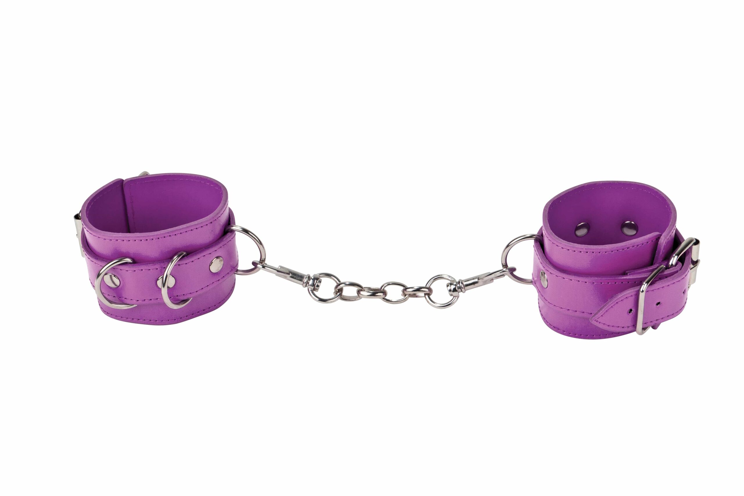 Handschellen mit eleganten Nähten für ein hartes Spiel zu zweit.. Eigenschaften:. – komfortabel und sicher. – lila. – mit 6 Gröpeneinstellungen. – für Handgelenke und Knöchel verwendbar. – Fessel-Breite: 5,5 cm Durchmesser