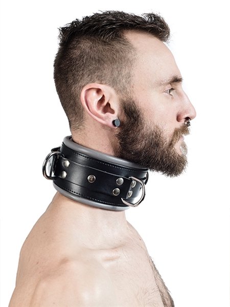 Hochwertige Sklaven Halsfessel mit grauer Polsterung