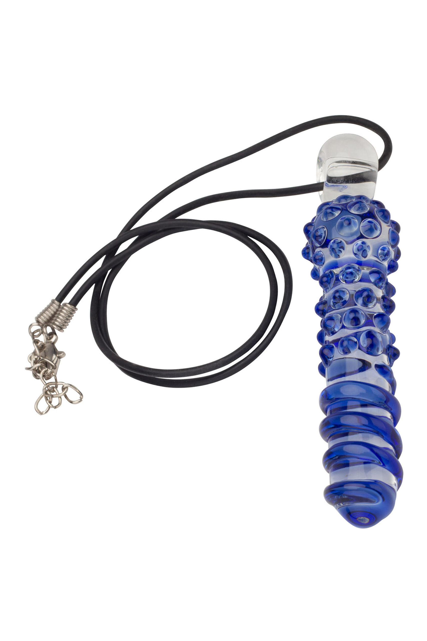 Kleiner aufregender Glasdildo als Schmuckstück getarnt. Dieser einzigartig geformte Glasdildo Blue Fantasy ist stets dabei und vermittelt schnell ein unwiderstehliches Glücksgefühl. Der kleine Glasdildo an Ihrer Halskette, mit den kräftigen Noppen und starken Wellen, ist nicht nur auf Ihrem Dekolleté schick anzusehen, sondern verwöhnt gern Ihre intimsten Stellen. Halsband Länge: ca. 50 cm