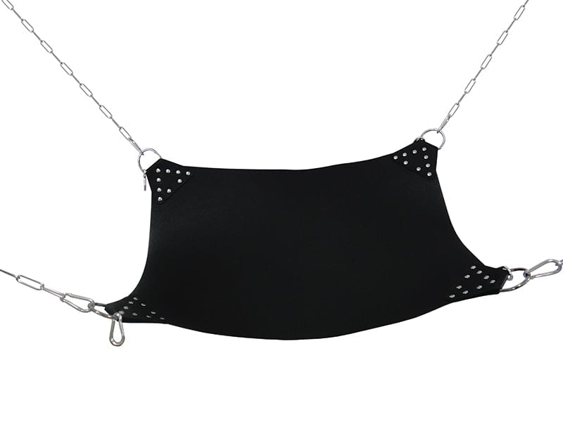 Eine Premium-Schaukel für abenteuerliches Spielen. Wir stellen Ihnen die Kiotos Sling & Chains vor, ein hochwertiges Accessoire, das Ihre wildesten Fantasien zum Leben erweckt. Diese luxuriöse schwarze Hängematte aus strapazierfähigem europäischem Leder bietet sowohl Komfort als auch Vielseitigkeit und ist damit eine aufregende Ergänzung Ihrer Sammlung. Jede Ecke der Schlinge verfügt über einen D-Ring mit passenden Doppelhaken, sodass sichere und anpassbare Konfigurationen möglich sind, die auf Ihre Bedürfnisse zugeschnitten sind.. Das Set enthält robuste Ketten aus verchromtem Stahl, die dieses Premium-Produkt vervollständigen. Die Schlinge ist 75 cm lang und 50 cm breit, während die Ketten 92 cm lang sind und ein maximales Gewicht von 120 kg tragen. Perfekt für alle, die eine Reihe aufregender Stellungen mit Stil und Sicherheit erkunden möchten.
