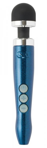 Handlich leichter Blue-Metal-Massager Die Cast 3R von DOXY mit leicht beweglichem, seidigem Silikon-Massagekopf.
