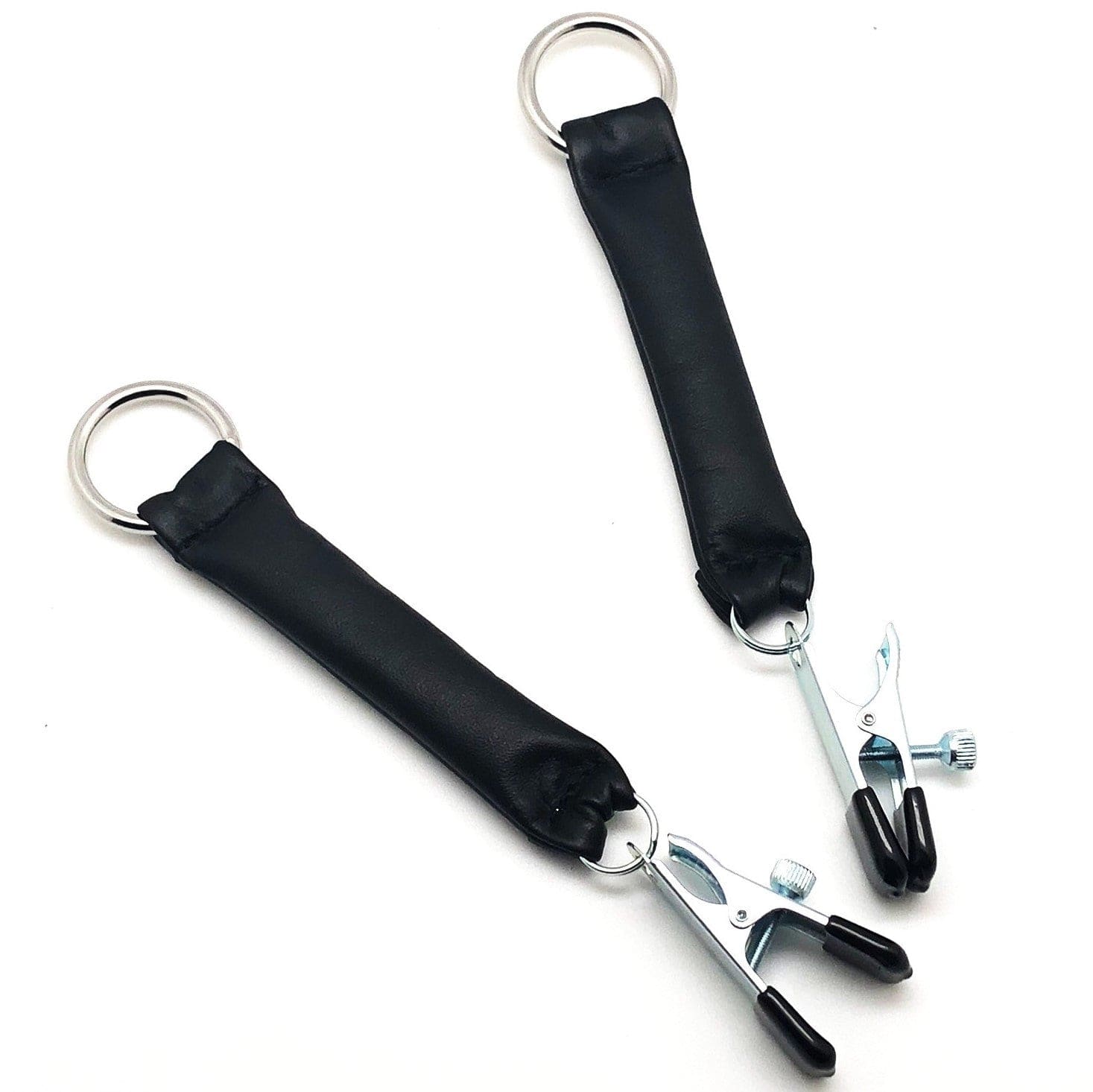 Diese Nippelklemmen bieten einen intensiven Reiz.. Eigenschaften:. – mit Ledergewichten. – pflanzliche Gerbung. – aus echtem Leder. – Druck durch Schraube einstellbar. – Metallklammern mit Gummi überzogen. – mit Ring für weitere Toys