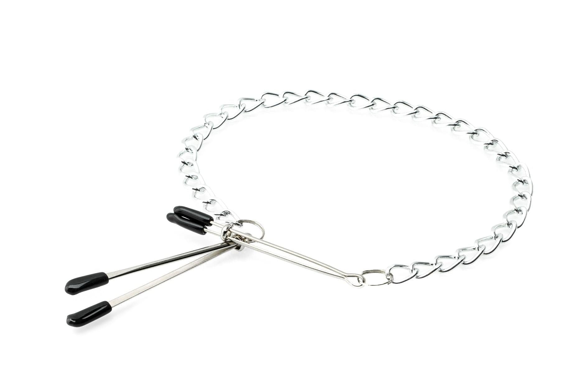 Diese Nippelklemmen lassen sich im Millimeterbereich verstellen.. Eigenschaften:. – mit einer Kette verbunden. – Gesamtlänge 44 cm. – Spreizweite 1,8 cm. – mit weichem Gummiüberzug