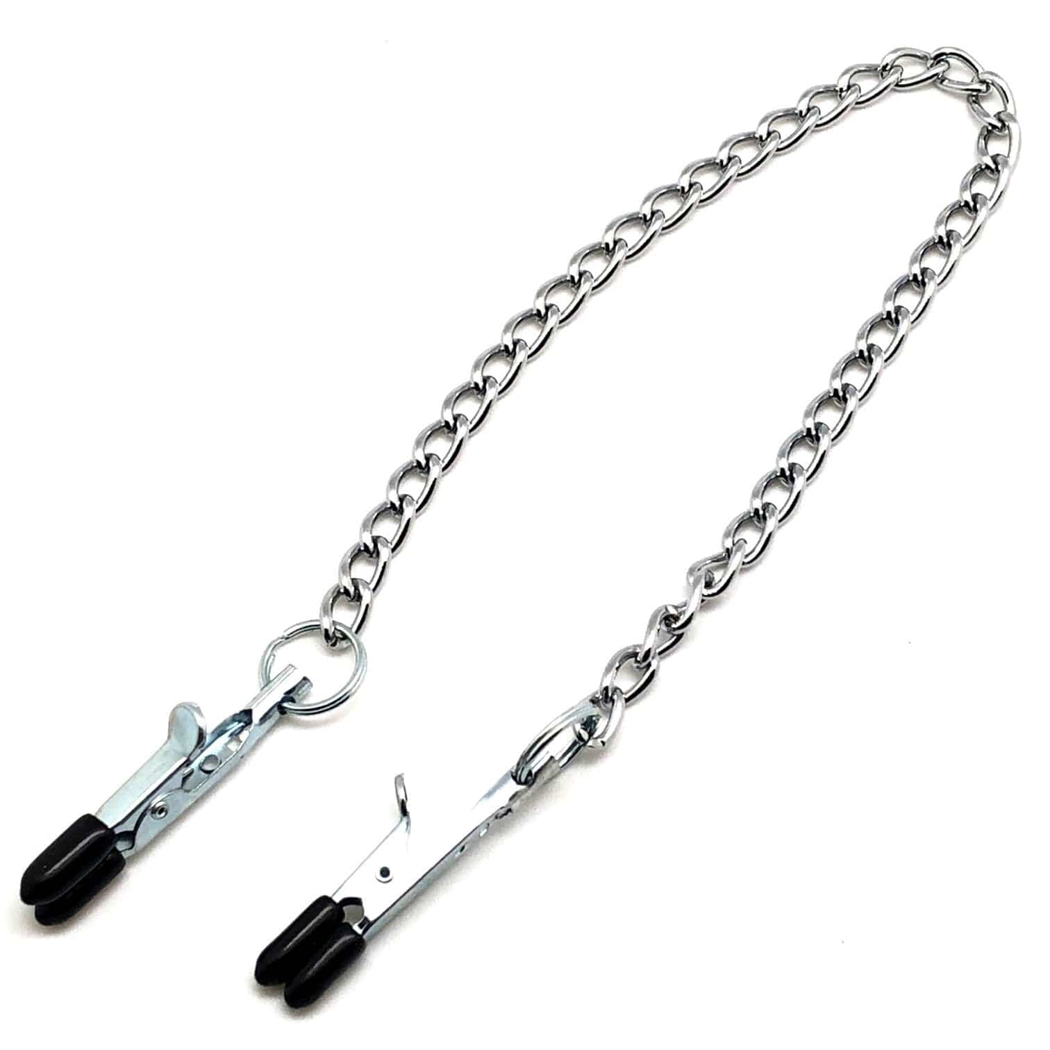 Diese Nippelklemmen sorgen für einen intensiven Druck.. Eigenschaften:. – mit Gummiüberzug. – aus Metall. – mit einer Kette verbunden. – Kettenlänge 30 cm. – Klemmenlänge 5 cm x 0,5 cm. – für Lust auf mehr