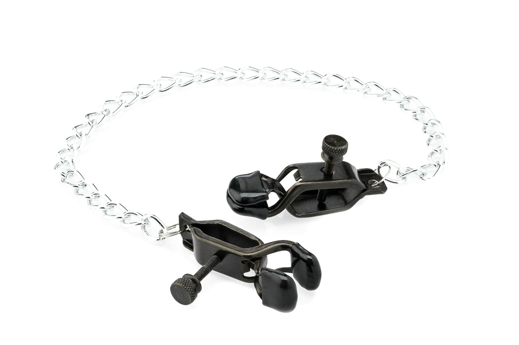 Diese Nippelklemmen sind universal einsetzbar.. Eigenschaften:. – mit weichem Gummiüberzug. – Spreizweite 1,4 cm. – Druck ist leicht einstellbar. – mit einer Kette verbunden. – Gesamtlänge 42 cm. – sorgen für einen sanften Schmerz. – Klemmen sind schwarz