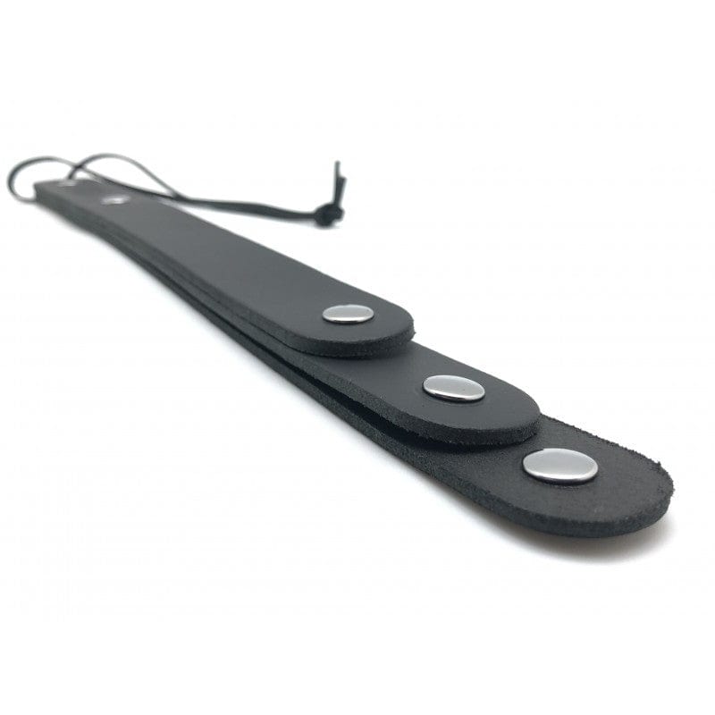 Dieses Paddel gibt sanfte Schläge auf Deinen Körper.. Eigenschaften:. – mit Halteband. – für intensive Momente. – bestehend aus 3 Lederriemen. – Gesamtlänge 42 cm. – mit 3 Nieten. – Riemen sind 3 cm breit