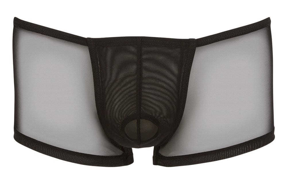 Schwarze Pants mit blickdichtem Beutel und einer Swell-Funktion.. Eigenschaften:. – Material aus 90% Polyamid und 10% Elasthan. – mit seitlichen Eingriffen. – schmales Bundgummi. – aus transparentem Netz
