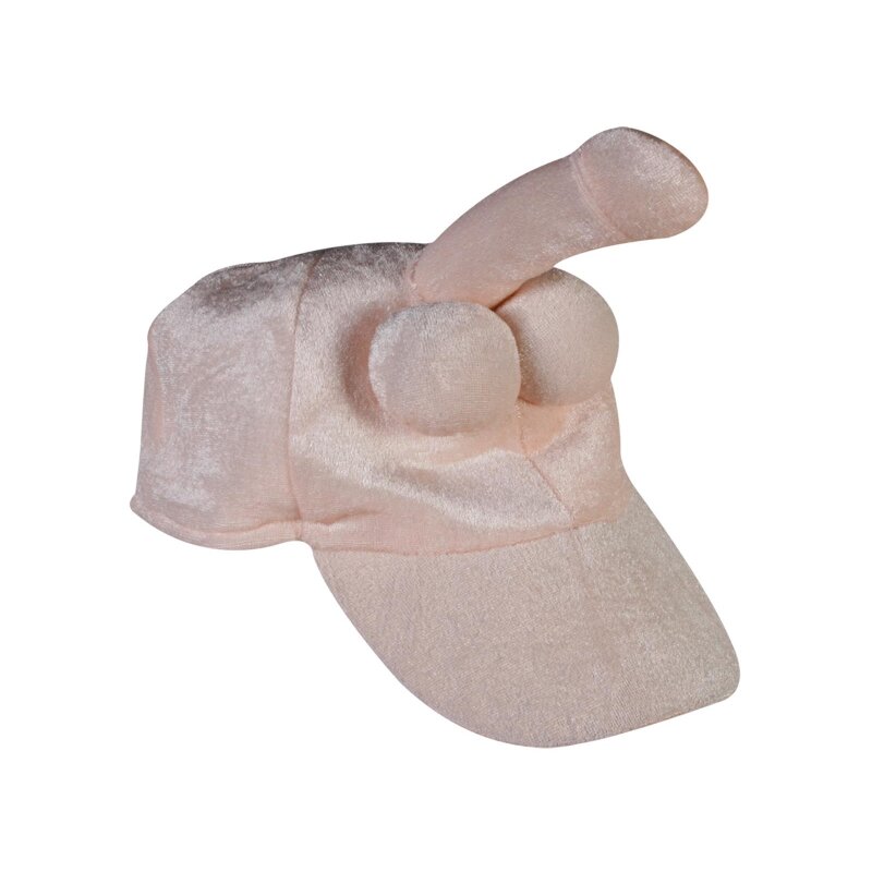 Wie der Hut des Mannes, so sein Johannes!? Schirmmütze aus hautfarbenem Plüsch mit prächtig aufgerichtetem Penis. 100% Polyester Handwäsche.