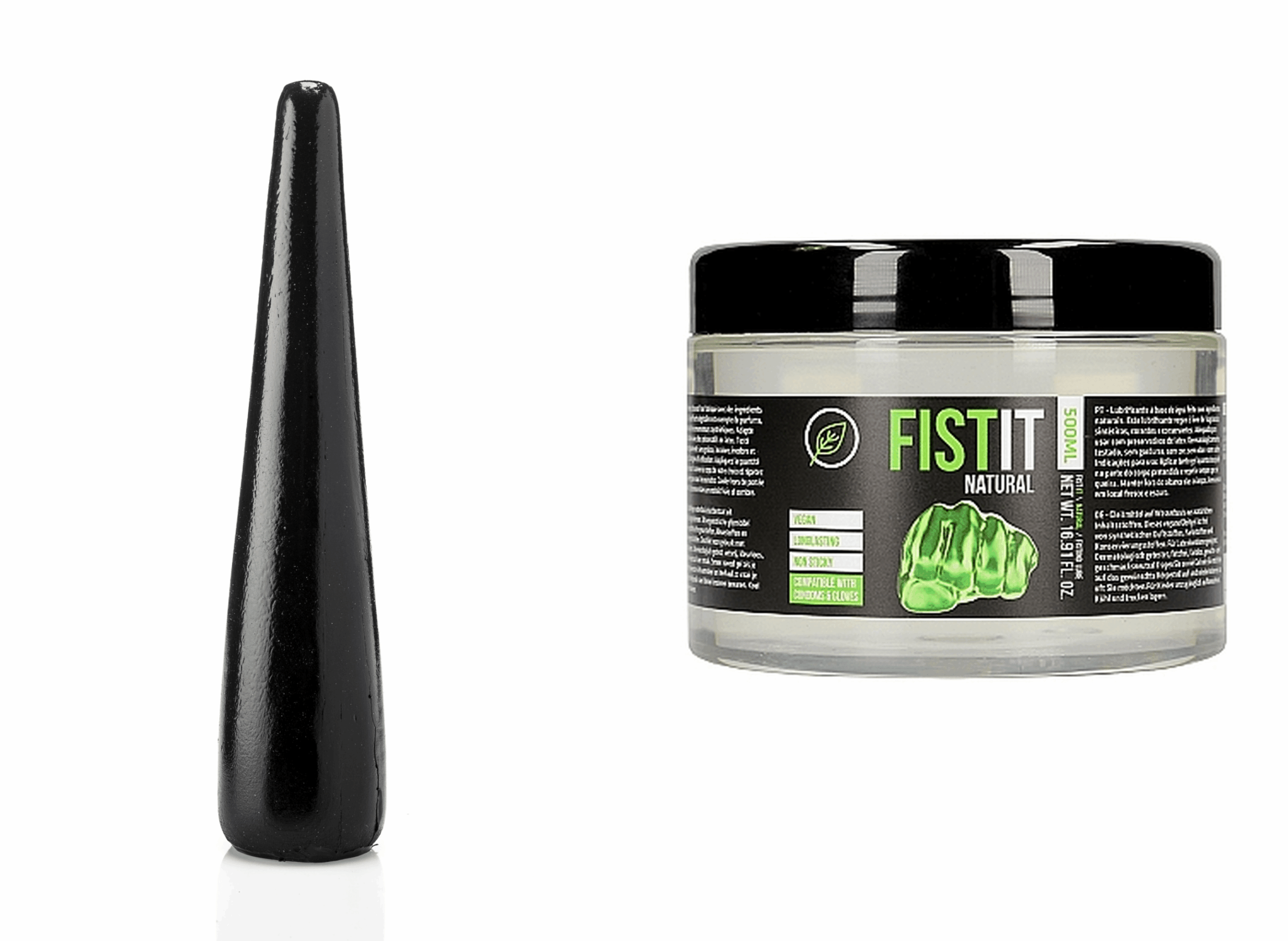 Mit diesem Set hast du alles was du zum Dehnen und “schmieren” deines Schließmuskels benötigst. Das Gleitmittel auf Wasserbasis mit 500 ml Inhalt und entspannender Wirkung sorgt für die nötige Feuchtigkeit und der Analdilo aus Vinyl, sorgt mit seiner sanften Steigung und 28,5 x 6 cm Größe, für das “Step-By-Step” dehnen.