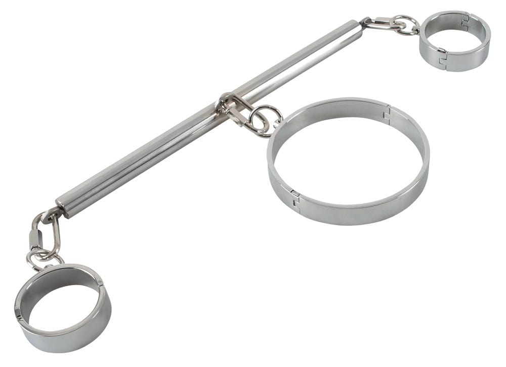 Diese Spreizstange enthält Hals- und Handfesseln und ist für echte Fetish Liebhaber.. Eigenschaften:. – aus glänzendem Edelstahl. – mit Magnetverschlüssen und Stiften. – Karabiner sind abschraubbar. – Gesamtlänge 32 cm. – Handfessel Durchmesser 17 cm. – Halsfesser Durchmesser 37 cm