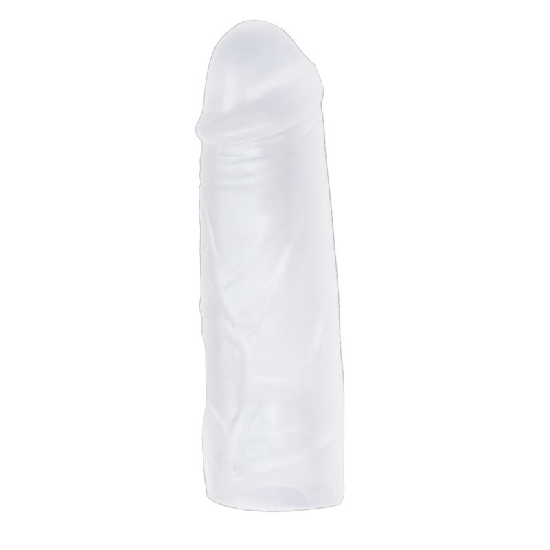 Verwöhnen Sie Ihre Partnerin mit einem 1 cm dickeren Penis! Diese transparente, prall geäderte silikonähnliche Penishülle ist eine absolute Bereicherung für Ihr Sexleben. Einfach über das Glied streifen und den strammen Sitz genießen, der für lang anhaltende steile Erektionen sorgt. Und Ihre Partnerin spürt sofort die Stimulations-Struktur und erlebt durch den 1 cm dickeren Penis wahre Orgasmusschauer. Gesamtlänge 16 cm, Ø 2 cm (extrem dehnbar).
